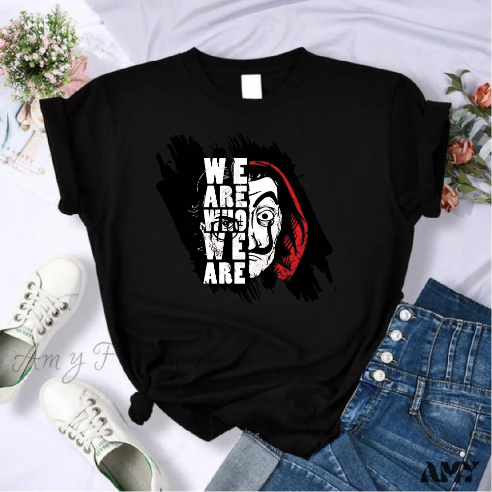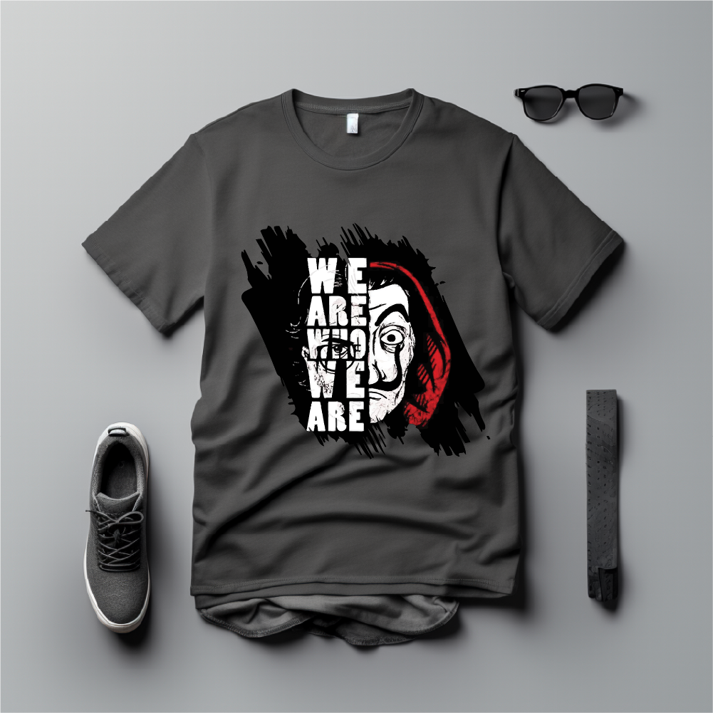 The Resistance T-Shirt draws inspiration from the iconic series Money Heist, symbolizing rebellion, unity, and courage. Featuring the bold phrase “WE ARE” alongside the unmistakable Salvador Dalí mask graphic, this design captures the spirit of defiance and solidarity that defines the movement. The black and red brushstroke background adds a dramatic, artistic edge, representing both chaos and revolution. Crafted from premium cotton-blend fabric, this hoodie offers warmth, comfort, and durability. Perfect for fans who stand for freedom, resistance, and the power of unbreakable unity.
