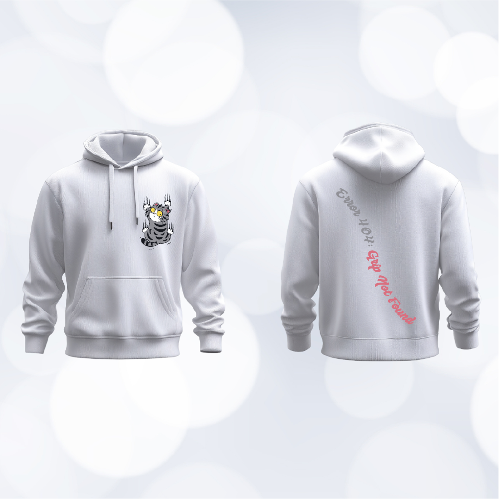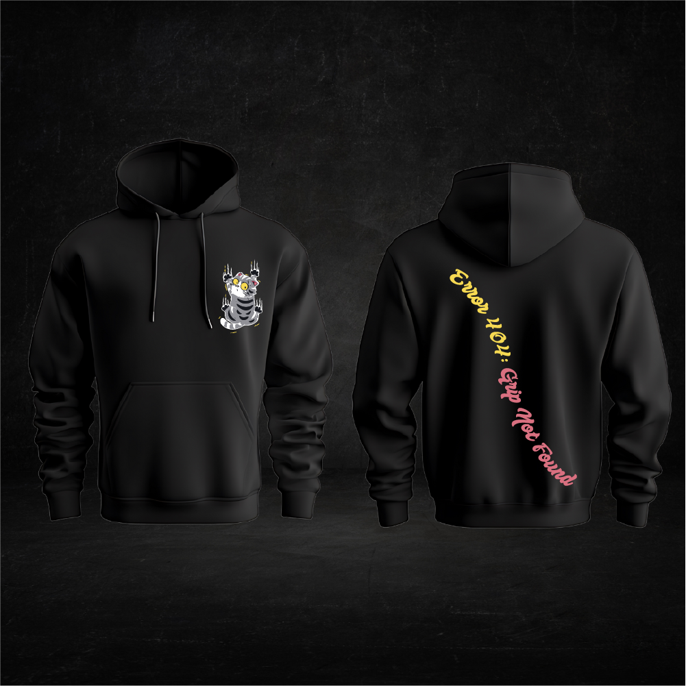 Glitch into style with the Error 404 Hoodie. Featuring a playful cat graphic on the front and the bold phrase “Error 404: Grip Not Found” cascading down the back, this hoodie blends tech humor with streetwear flair. Made from soft, durable fabric, it’s perfect for those who love a mix of geek culture, creativity, and comfort.
