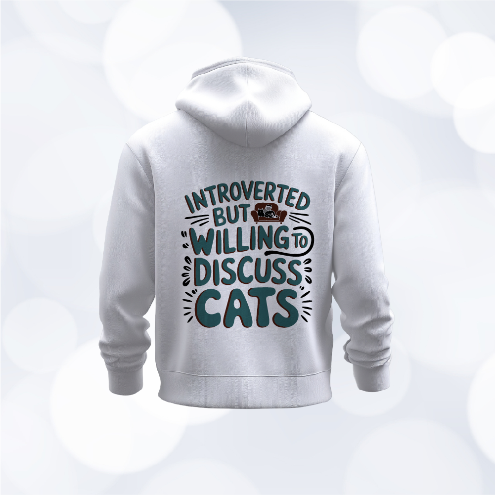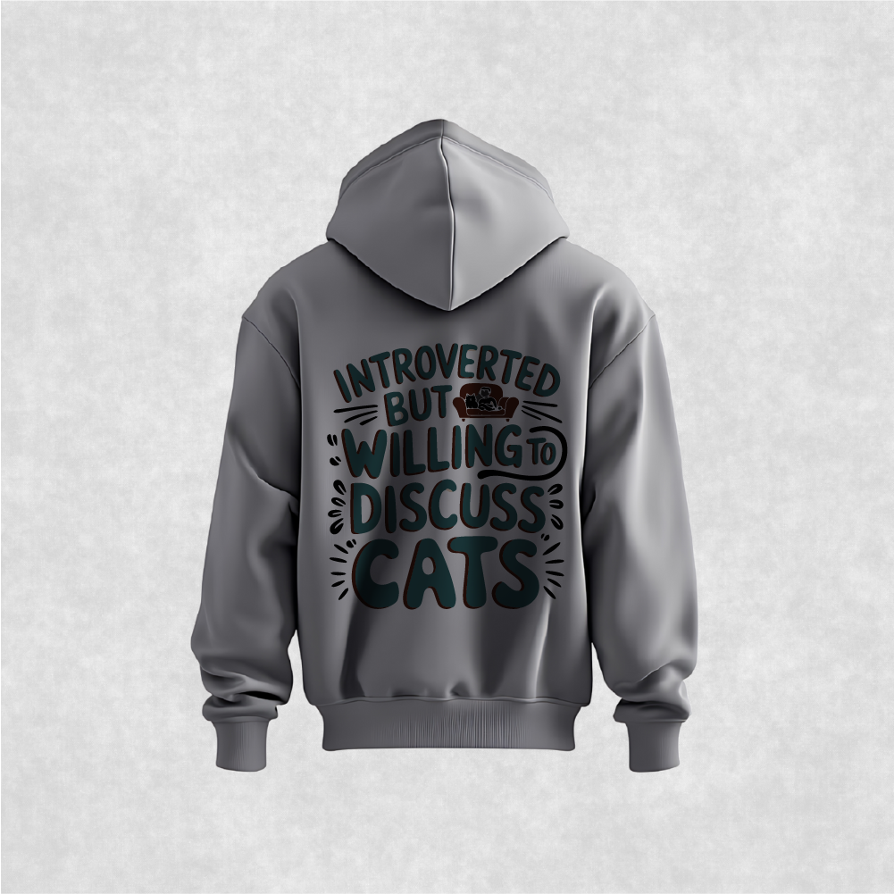 Show off your quiet charm and feline obsession with the Introverted Cat Lover Hoodie. Featuring the playful quote “Introverted but willing to discuss cats,” this cozy hoodie is perfect for those who prefer calm conversations, especially when they’re about cats. Soft, stylish, and full of personality, it’s the ultimate comfort wear for every cat enthusiast.