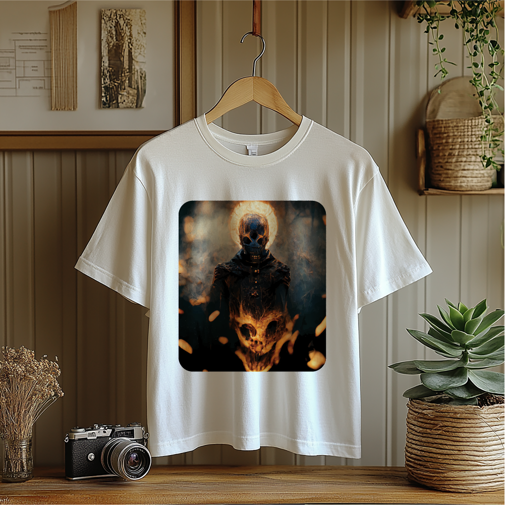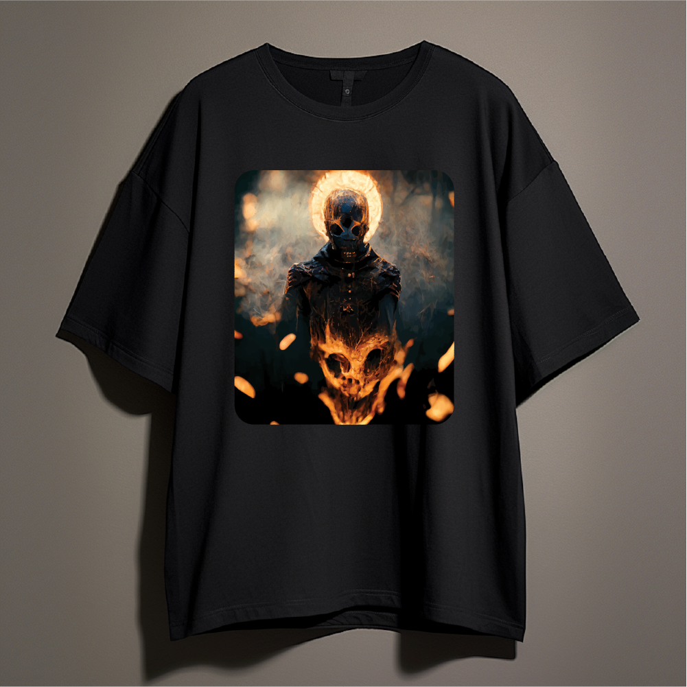 Ignite your dark side with the Hellfire Reaper Skull Graphic Drop Shoulder T-shirt. A fierce design that radiates power and mystery. Featuring a flaming skull figure surrounded by smoke and embers, this tee captures the essence of chaos and strength. Crafted from soft, durable cotton, it’s perfect for those who live boldly and embrace the fire within.