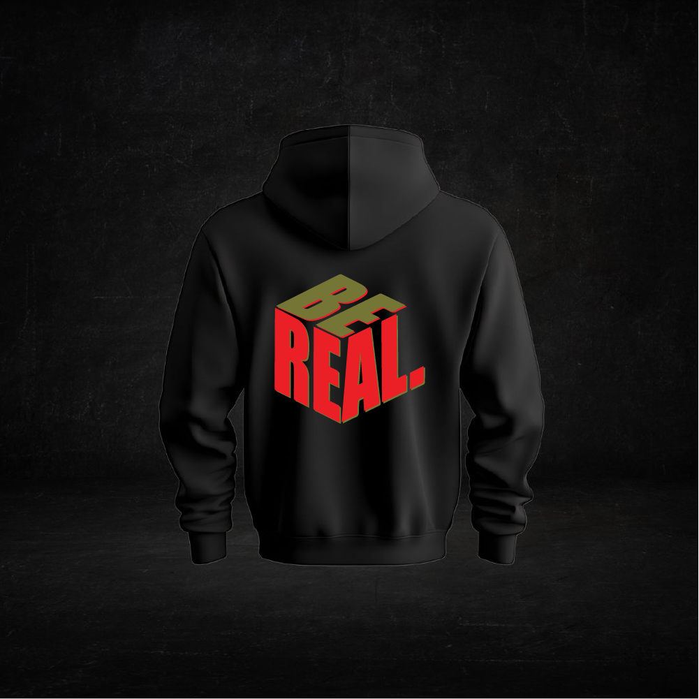 Make a bold statement with the Be Real Hoodie. Featuring a striking 3D block design with the words “BE REAL.” in vivid red and gold tones, this hoodie embodies authenticity and confidence. Crafted from premium, soft fabric, it offers both comfort and edge, perfect for those who value staying true to themselves while keeping their streetwear style sharp.
